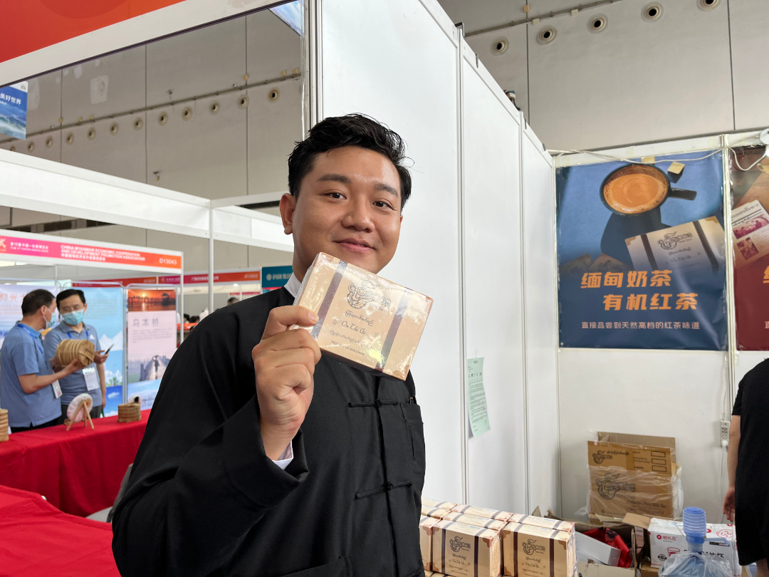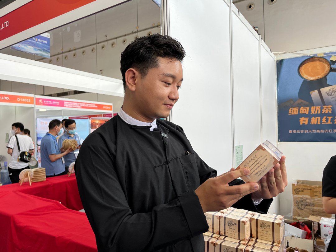 參觀完馬來西亞館,藺英振來到了緬甸館,在這里有他非常熟悉的朋友,他感到非常開心。