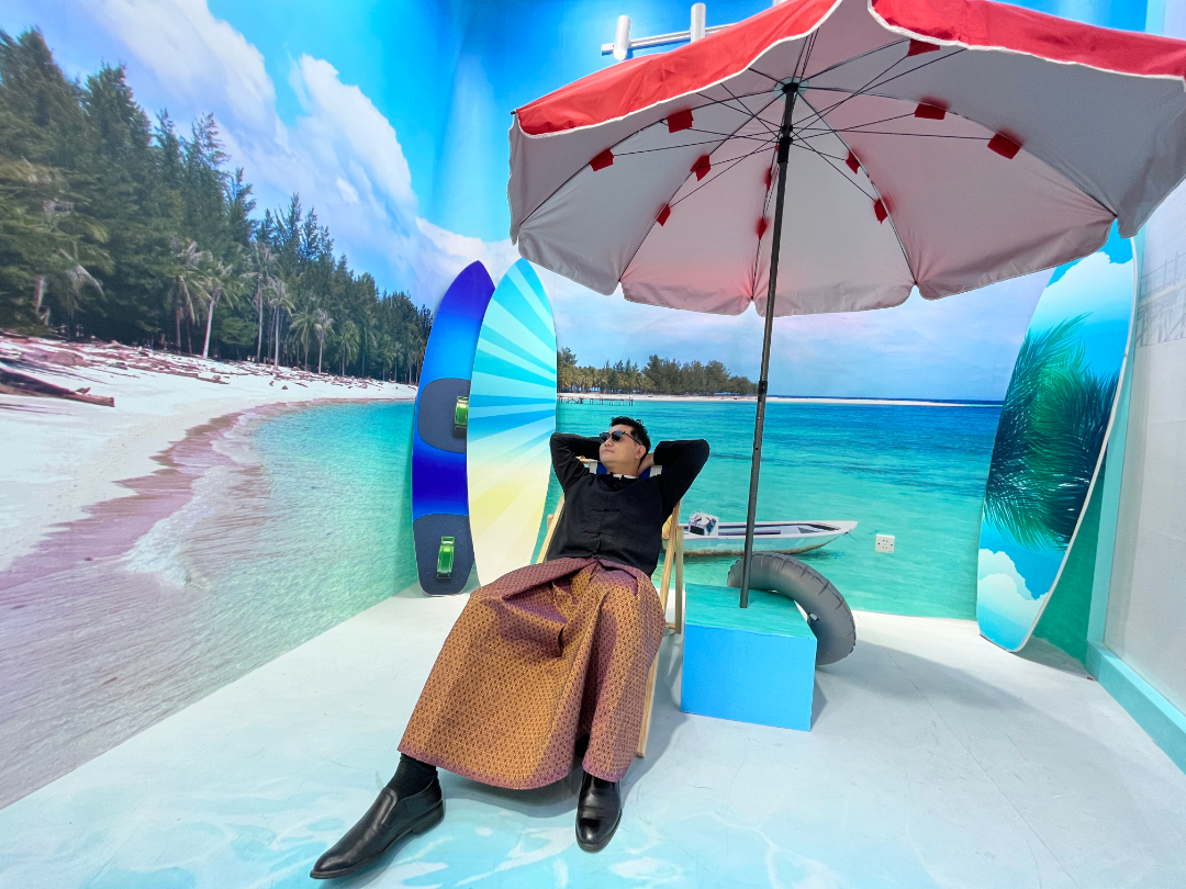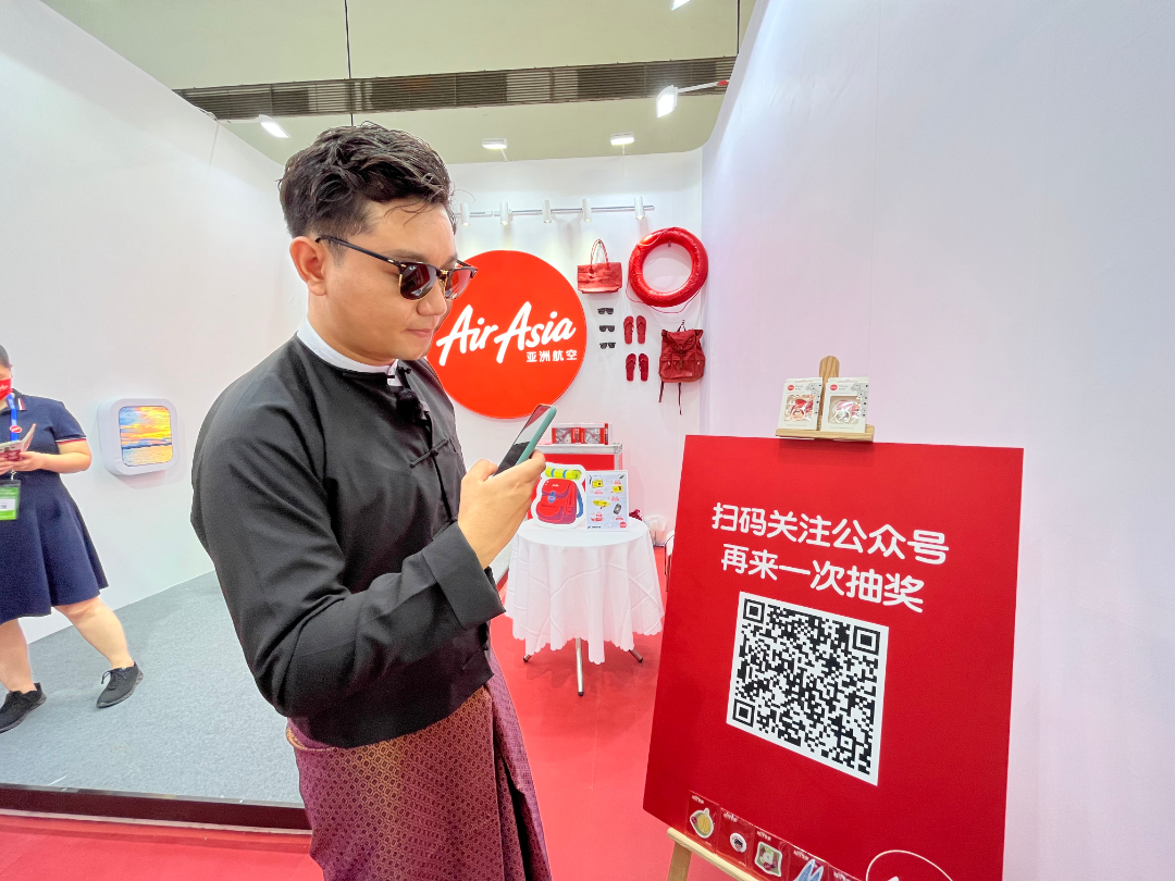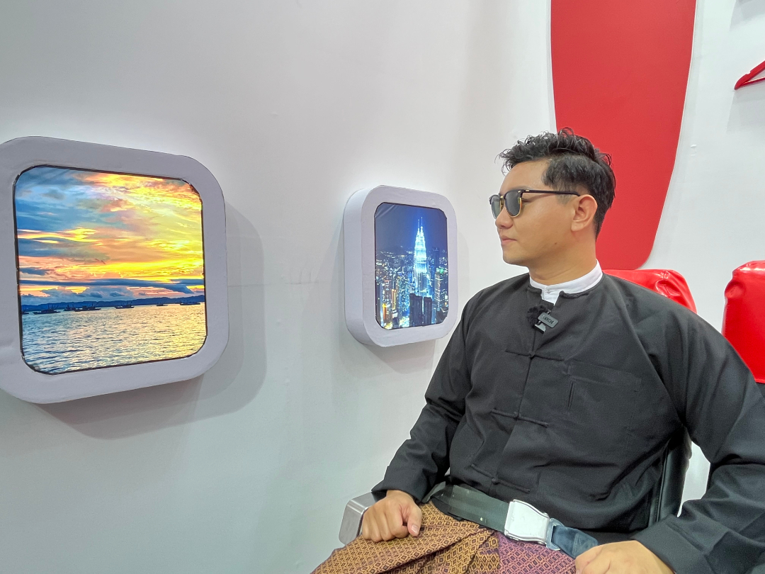 在參觀過程中,藺英振在亞洲航空公司設置的品牌展位里,體驗模擬機艙。隨后,他又參觀了由馬來西亞國家旅游局設置的“度假體驗區”,他感慨道:“因為疫情原因,已經很久沒有旅行了,這里能夠感受到度假的快樂,覺得很驚喜!”