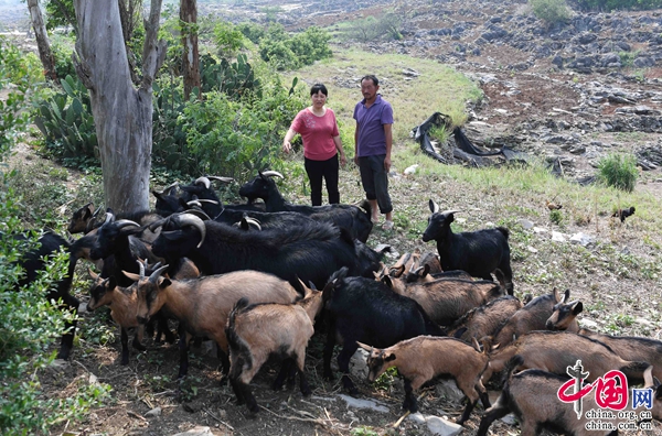 打破發展瓶頸,創生態產業“新模式”。脆弱的生態環境嚴重制約著合作社的發展,如何將“石漠荒山”變成“金山銀山”成為聶應菊必須解決的難題。在各級各部門的關心支持下,聶應菊積極探索“核桃+牧草+山羊+藥材”復合經營模式,自己帶頭種植150畝核桃,帶動群眾種植1200畝,發展長期經濟林果,并利用林下空間種植牧草150余畝,種植白芨、滇黃精等中藥材56畝,通過以短養長方式,在解決了山羊牧草的同時又解決了種植核桃等經濟果林周期長、見效慢的問題。如今的三尖山核桃林郁郁蔥蔥,牧草深扎的根保住了水,滿山跑的羊兒產生的羊糞育肥了套種石漠地里的核桃樹,石漠地里出現了生態循環經濟。