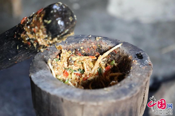 (炮仗花舂豆豉 瀾滄縣融媒體中心供圖)