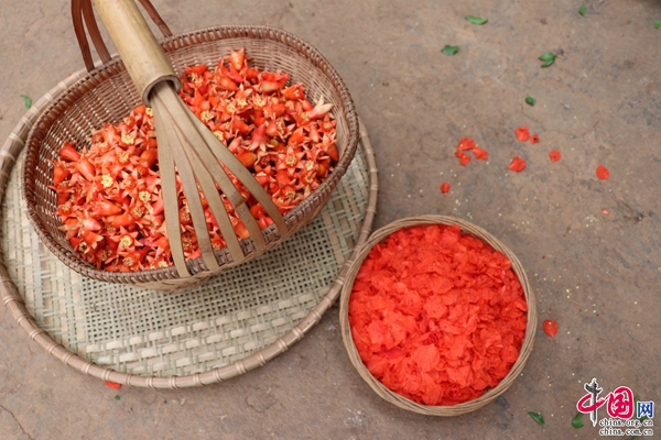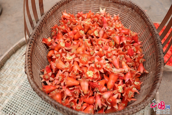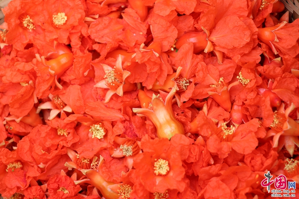 石榴,別名安石榴、若榴、丹若,其花味酸、澀??刹皇撬械氖窕ǘ寄脕沓?,有一些村民還要留著結果賣錢。據了解,石榴花兩性,根據子房發達與否,有鐘狀花和筒狀花之別。鐘狀花子房發達,有利于受精結果,俗稱“母花”,筒狀花則俗稱“公花”或“空花”,其基部較小,常開完花后自然脫落,僅提供花粉而不能結果實。而富于創造的富邦人民變廢為寶,將“公花”收集起來食用。
