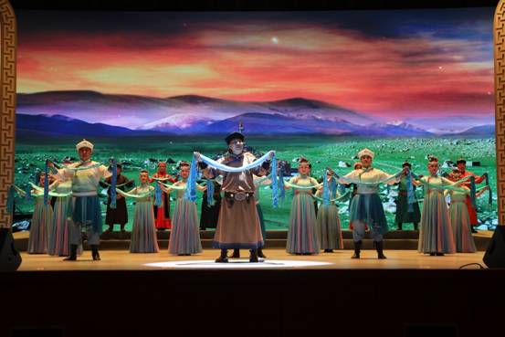 4月30日,溫泉縣文化中心華燈璀璨,歌聲悠揚。溫泉縣烏蘭牧騎仿佛從草原的深處走來,帶著青草芬芳、藍天清澈、駿馬馳騁和戈壁遼闊,為觀眾首次奉獻民族風情劇《戍邊情緣》。