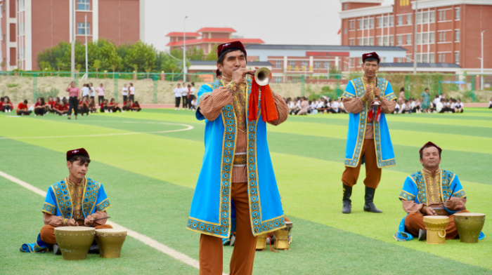8月3日,于田縣體育場里擠滿了各鄉鎮前來參賽的廣場舞選手和慕名而來的觀眾,隨著指揮員一聲令下,各代表隊迅速集結隊伍組成一個個整齊的方陣??h文工團演員及文化館民間藝人們也帶來了精彩絕倫的表演,彈都塔爾、吹嗩吶、敲納格拉……各式維吾爾族傳統樂器令人眼花繚亂,伴著樂曲,優美的舞姿更是令人陶醉。