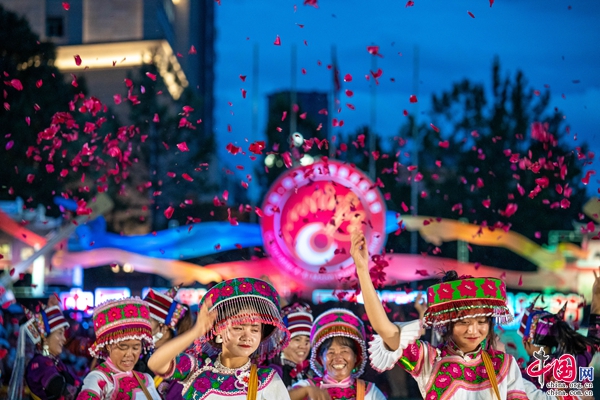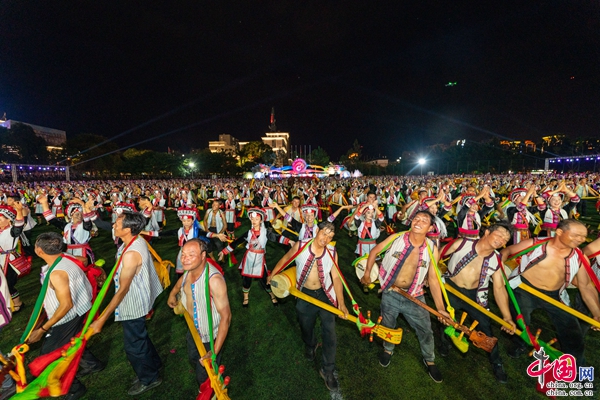 8月7日晚,主題為“鄉村振興筑夢慶來故里七城同創共建福地彌勒”的中國·彌勒第十一屆阿細跳月民族節開幕。十七支來自各鄉鎮街道、東風農場社區管委會、少兒阿細跳月方隊的近2700多名群眾身著盛裝,齊聚彌勒市文化中心足球場,共經風雨、共享喜樂。