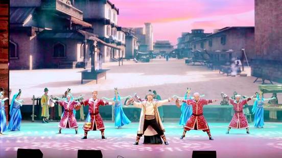 《一夢千年?又見拜城》旅游劇圍繞著名佛學翻譯家鳩摩羅什,以舞臺表演的形式展現其在拜城的歷史故事,生動展現了鳩摩羅什為佛教和譯經事業作出的巨大犧牲和貢獻,講述了佛教從西域傳入中原的發展過程,表現了西域佛教文化與各民族文化交流交融的歷史事實。