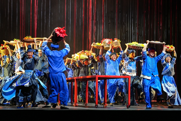 開幕式后,來賓和觀眾一起觀看了文山州民族文化工作團創作的舞劇《錦繡如歌》。該劇將紅色故事與壯族《坡芽歌書》相結合,有著鮮明的民族特色和地域色彩,是一部歌頌黨、歌頌邊疆民族大團結、歌頌英雄主義浪漫情懷的舞劇。