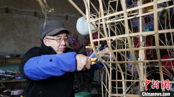 民間手藝人劉裔松在扎龍燈頭。楊廷雪攝