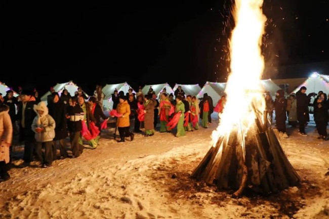 民間藝術展示地道年俗。民族特色舞蹈、歌曲輪番上演,煙花秀、篝火晚會、美食品鑒,讓游客在冬夜里享受溫暖和快樂。