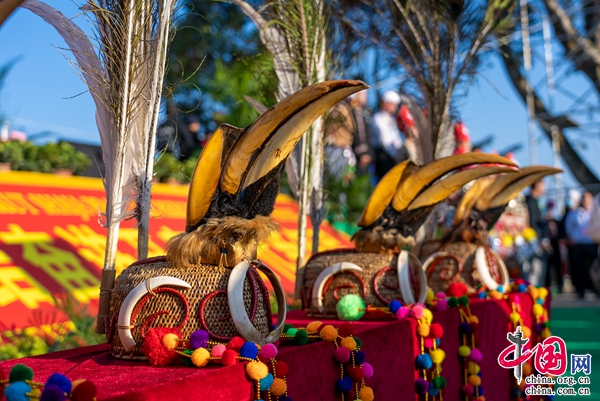 據悉,芒市2024年目瑙縱歌節于2024年2月23日至25日在德宏州國際目瑙縱歌文化園隆重舉行?;顒悠陂g,各族群眾穿上節日盛裝,鼓樂齊奏,從四面八方匯集到目瑙縱歌舞場,跟著頭戴美麗鳥羽飾物帽子的領舞總頭后面,千萬人踩在一個鼓點的節奏上,齊歌共舞。