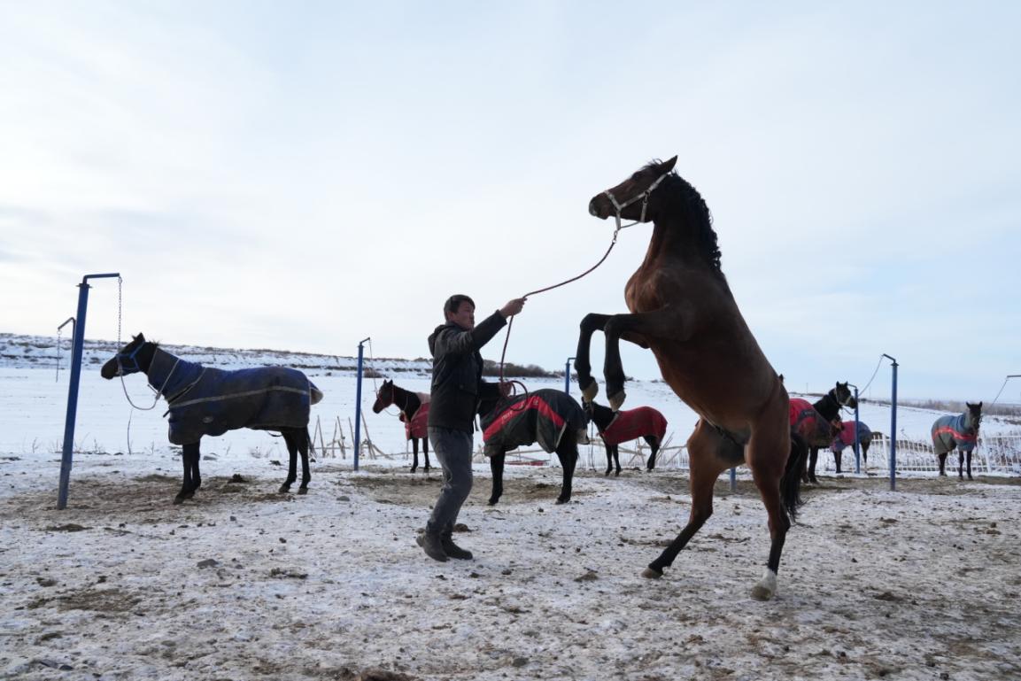 “我訓練最長的一匹馬叫‘刀子’,到2024年年初,它陪伴我已經是第五年了,它給我贏得了很多榮譽,我也早已把他當孩子一樣看待了,希望新的一年,它們可以越戰越勇,能夠健康成長?!惫漳?卻肯說。
