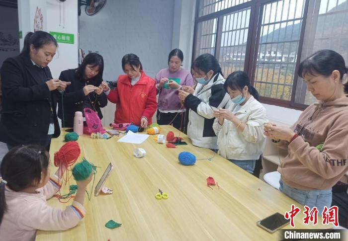 圖為崇義縣小江社區“巧手媽媽”編織服務隊正在進行手工編織教學。受訪者供圖