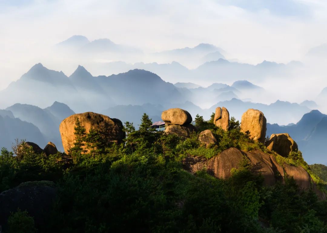 玉蒼山景區位于蒼南縣城西北方向20多公里,是國家級森林公園、4A級旅游景區,總面積2378.6公頃,森林覆蓋率95.9%,夏季平均氣溫低于25.4℃,享有“天然氧吧”“避暑勝地”等美譽。景區以日出、云海、奇石為賞景三絕,坐擁山、石、溪、瀑、湖、林等景觀108處,兼具雄渾幽秀之美,堪稱大自然鬼斧神工之作。