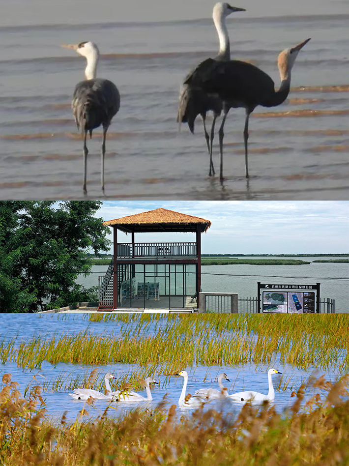 記錄分布有鳥類140種,最佳觀鳥時間是3月-7月、11月-12月,可觀測到國家一級重點保護的鳥類“濕地旗艦物種”白頭鶴、“鳥中大熊貓”黑臉琵鷺等保護鳥類;已建一座觀鳥亭,配備了立式望遠鏡、便攜望遠鏡等觀鳥設備。