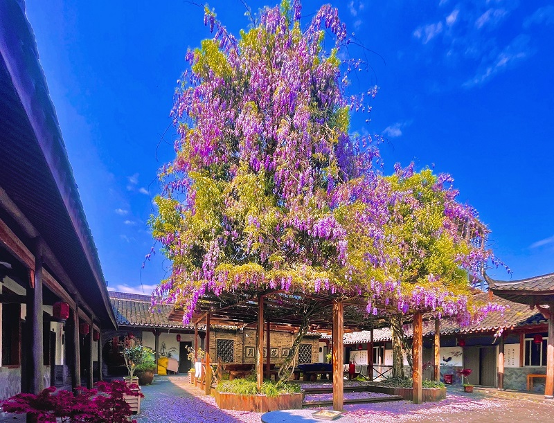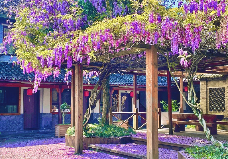 春日,在溫州市文成縣南田鎮,紫藤花開得剛剛好。