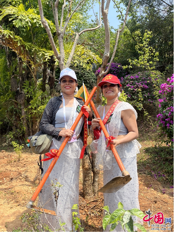 (斯里蘭卡雙胞在墨江北回歸線標志園種樹)