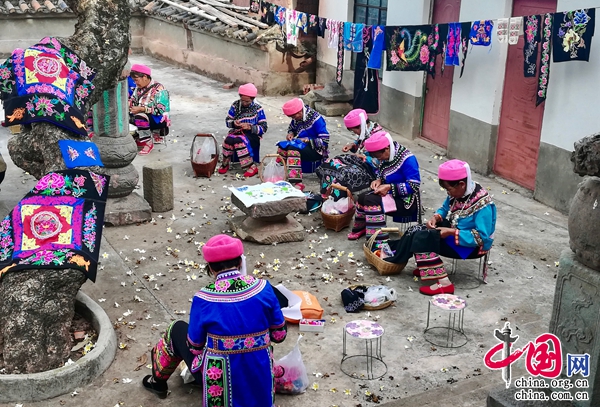 悠悠走在村間石板路上,空氣中彌漫著雞蛋花的香味,每一次盛開都是一年時光的味道,一群身著民族服飾的繡娘做繡工、唱調子的影子時時縈繞心頭,一幅幅像雞蛋花一樣色彩艷麗的作品向外界展示著底土人民的勤勞與智慧。(尹文娟 雙柏縣大麥地鎮人民政府供稿)