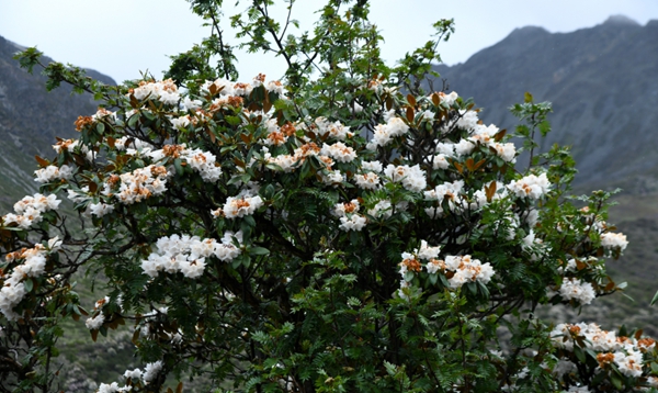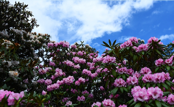 6月,來到位于云南省迪慶州香格里拉市東旺鄉勝利村的雪山之巔,就會看到漫山的高山杜鵑花開成海,那些白的、紅的、粉的高山杜鵑在山野里次第開放,為廣袤的山梁披上一件件彩色外衣,蔚為壯觀。