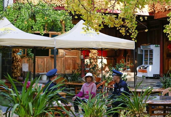 “楊警官,我家客棧刷身份證的機器可能有故障,請你來幫瞧瞧?!薄糜瓮镜絹碇H,派出所教導員楊自文帶著民警圍繞游客“吃住行游購”五大要素,開展安全檢查、送證上門、法治宣傳等工作,及時收集社情民意、消除安全隱患,化解矛盾糾紛。