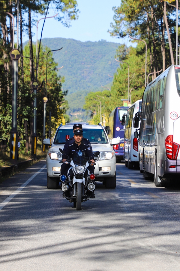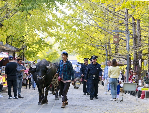 紛至沓來的游客,給鄉村旅游注入了新活力,也給轄區社會治安和交通管理帶來了諸多壓力和考驗。固東派出所秉持“警力跟著游客走”的工作理念,統籌市局抽調下沉警力,科學合理用警,編組沉入景區,建立屯警景區、動中備勤、及時處置的“銀杏警務”機制。