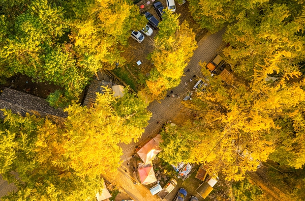 (航拍銀杏樹下的咖啡營地。楊根蔚攝)