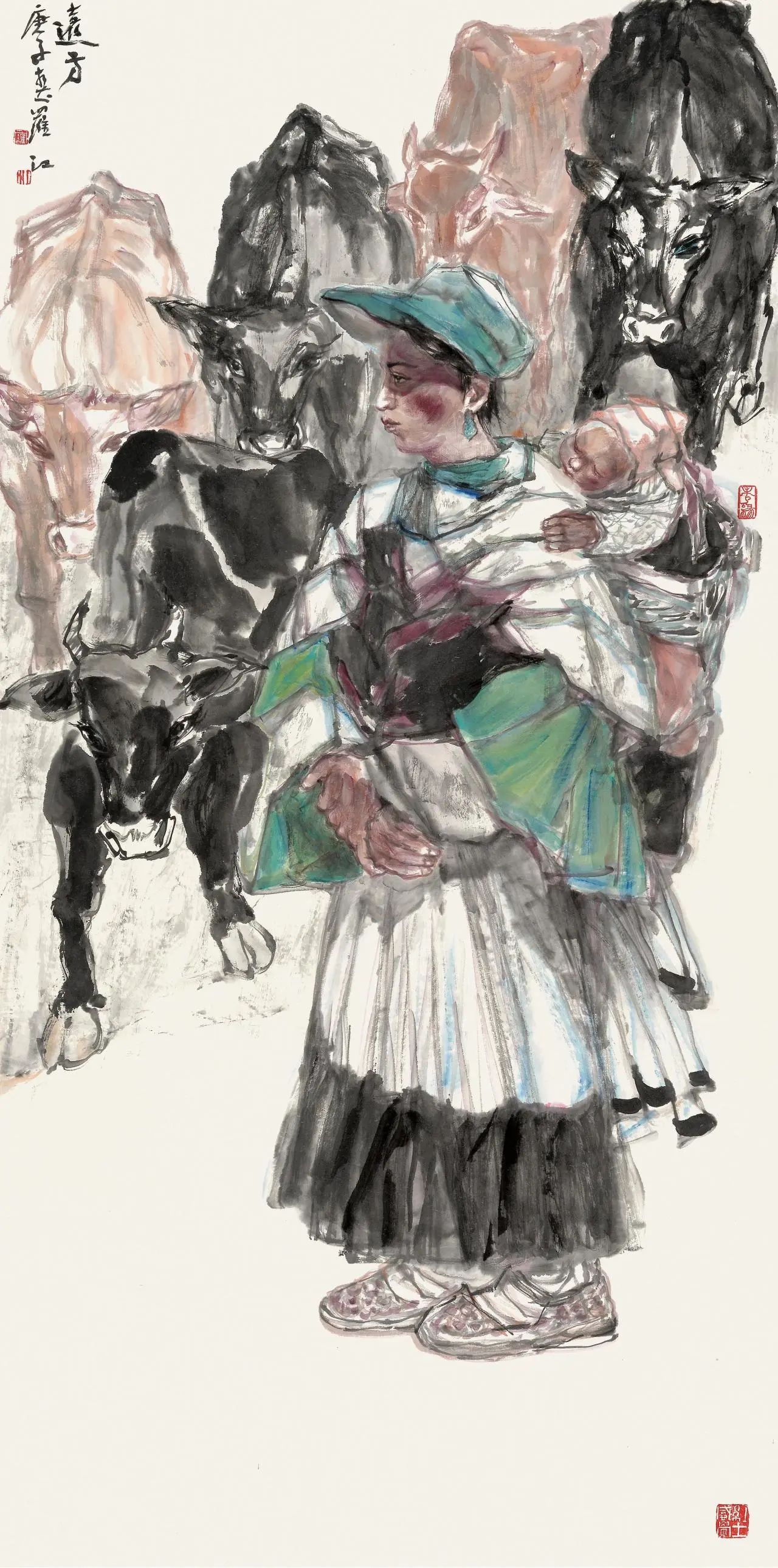 (《哀牢山系列之二》136x68cm,中國畫,2005)