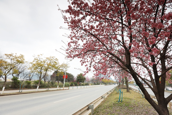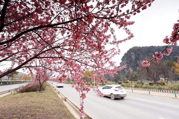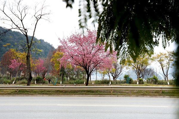 在樂水洞、八道哨鄉豹子坡、矣堵村道路兩旁,熱情的冬櫻花爭相盛開,花瓣隨風飄落,地面好似鋪上了一層柔軟的花毯,行人漫步其間,盡情享受普者黑景區的冬日獨特美景。(馬衛忠、丘北縣委宣傳部供稿)