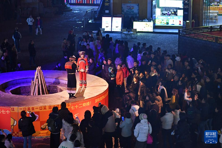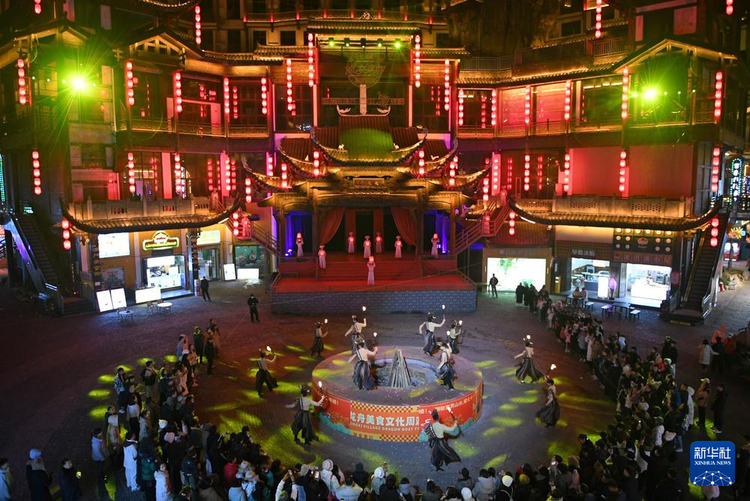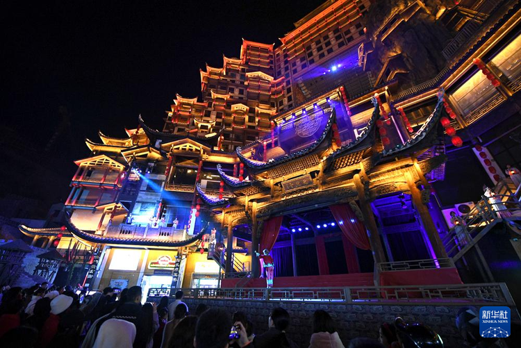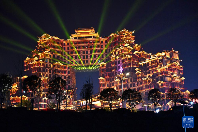 夜幕降臨,華燈初上,湖南省張家界市七十二奇樓景區流光溢彩,景區通過民俗表演、非遺體驗等多種休閑業態吸引游客,激發文旅夜經濟活力。
