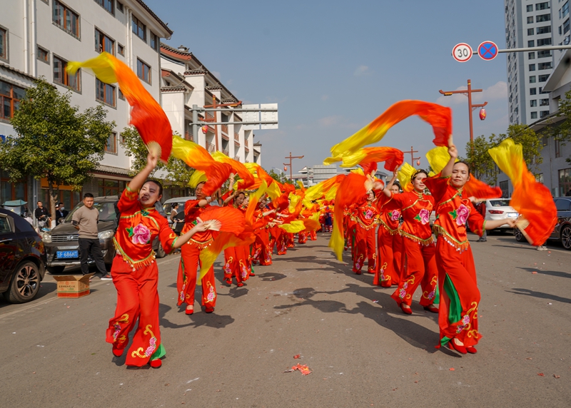此次非遺(民俗)展演活動內容豐富、形式多樣,關索戲、踩高蹺、棕扇舞、花鼓舞、舞龍舞獅等傳統民俗表演精彩紛呈,表演者們身著精美的傳統服飾,手持各式道具,通過精湛的技藝和生動的表演,將非遺的獨特魅力展現得淋漓盡致。