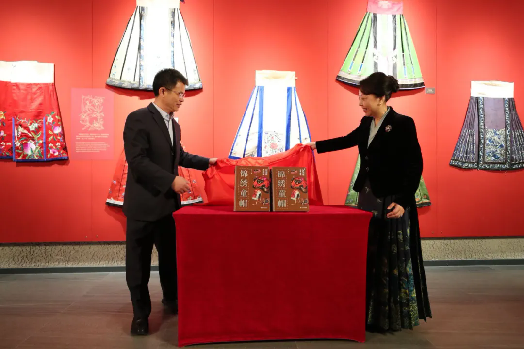 2025年3月12日上午,北京電影學院主辦、山東省服裝設計協會支持的“衣脈千年數智煥新——中國傳統服飾與數智演繹展”開幕,當代世界出版社傾力打造的《錦繡童帽:傳世虎頭帽文化圖鑒》以“圖書展示+文物站臺+AI賦能”的新形式,在開幕式上對外發布。
