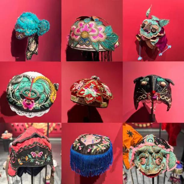活動現場展出了近300頂清代、民國時期的虎頭帽:有紅的、綠的、藍的、黑的,色彩紛繁;有無頂的帽圈,鏤空的涼帽,春秋季佩戴的碗帽,冬季保暖的風帽,款式各異;有老虎、獅子、麒麟、蝙蝠、龍、鳳、“十二生肖”等動物造型,蓮花、佛手、桃子、梅花、松樹、竹子等植物造型,形象逼真。刺繡五毒圖案寓意驅邪祛祟、百毒不侵,蓮花和童子寓意連生貴子、家族昌盛,蓮花、佛手、桃子的三多紋樣寓意加官進爵、福壽雙全,底蘊深厚。一頂童帽,就是一個愿望,一份期許,一個祝福。這些來自一二百年前的文物,為我們打開了了解中國非遺工藝、了解中華優秀傳統文化的窗戶。