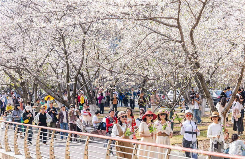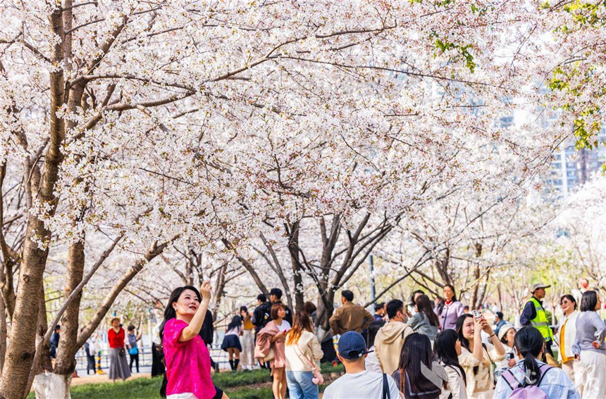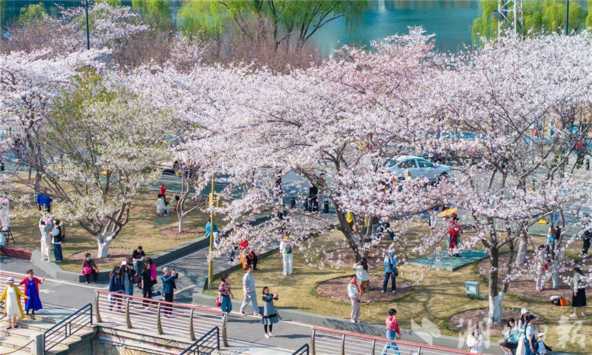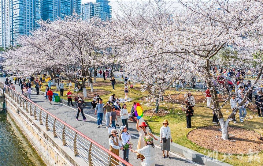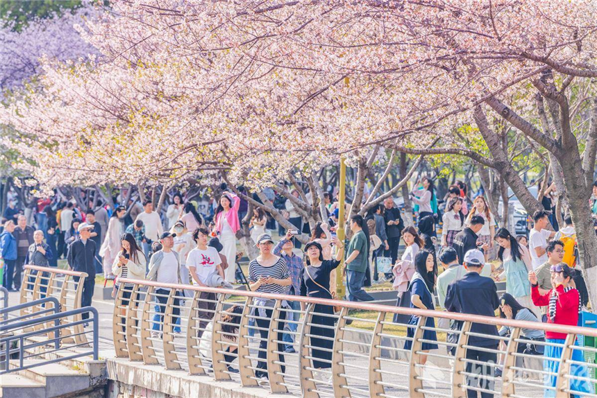 3月24日,武漢西北湖公園櫻花進入盛花期,如云似霞,吸引眾多游客拍照打卡。目前,武漢櫻花進入盛花期,全市公園景區和道路共有賞櫻點200余處。(湖北日報全媒記者 薛婷 攝)