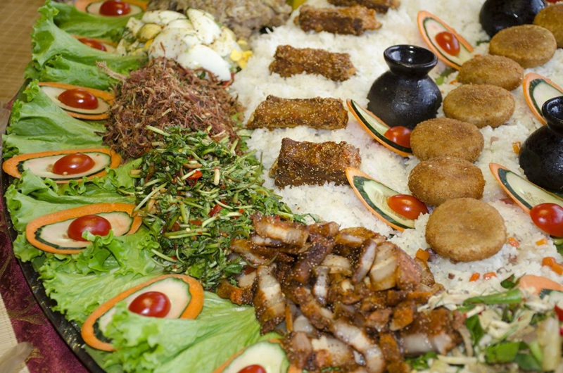 孔雀宴是德宏傣族景頗族自治州的代表性宴席。它以栩栩如生的孔雀造型為視覺核心,20余道菜品如孔雀開屏般鋪陳??兹傅奈鍖游舶痛淼潞甏鲎?、景頗族、德昂族、傈僳族、阿昌族五種少數民族,表達了人們對幸福生活、民族團結的追求,具有鮮明地域特色,也表示“孔雀開屏,迎八方賓客”。