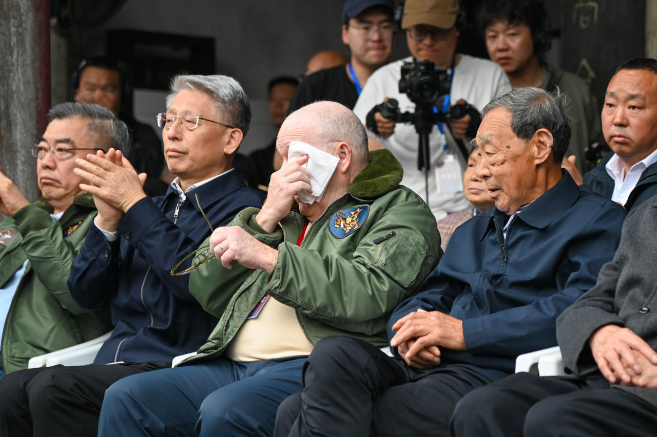 與此同時,當情景劇《一碗雞蛋面》的幕布拉開,時空在舞臺上奇妙重疊。舞臺上“村民”將珍藏的雞蛋面捧給美國飛行員吃時,臺下的美國飛虎隊飛行員后代克利福德眼含熱淚?!霸谑巢还沟膽馉幠甏?,這份饋贈勝過千言萬語?!笨死5碌母赣H雖未參與“杜立特行動”,但曾在中國執行過104次飛行任務?!拔襾淼竭@里是為了紀念我父親在中國所付出的努力,我也非常珍視我們與中國人民之間的這份友誼,尤其是在現在,更需要這樣的記憶錨點,讓年輕一代記住它?!?/p>