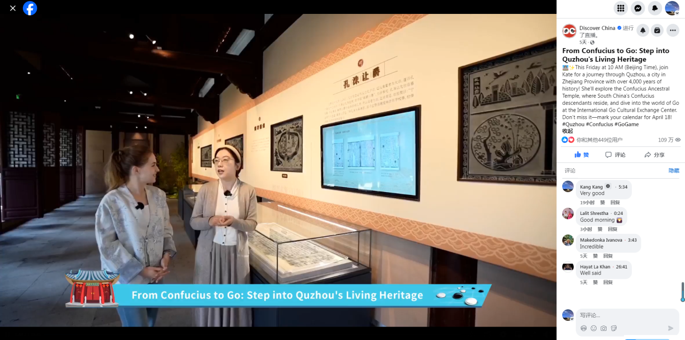 本次英文直播在Facebook平臺“探索中國”(Discover China)賬號及中國網官方新浪微博賬號同步播出。直播播出72小時內,得到了廣泛海內外網友的關注,Discover China賬號播放量超120萬,中國網新浪微博官方賬號閱讀量104萬,播放量54.7萬,為進一步提升衢州的區域特色和國際知名度,帶動衢州文化和旅游產業的快速發展貢獻了力量。