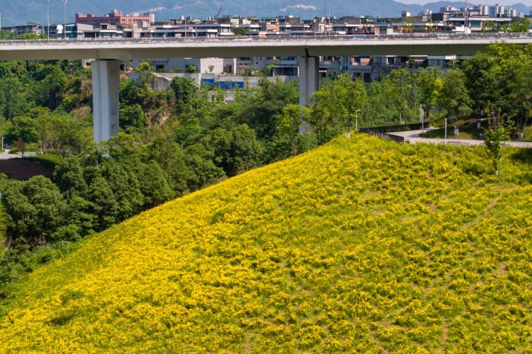 ▲2025年5月12日,沙坪壩文旅城濱河公園,金雞菊在陽光下綻放。記者 尹詩語 攝