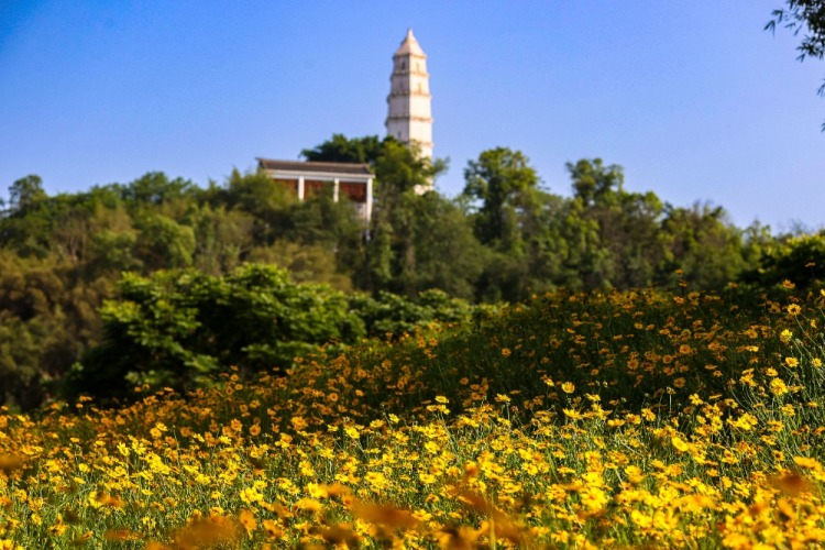 ▲2025年5月12日,江北區塔山公園,金雞菊在陽光下綻放。記者 尹詩語 攝