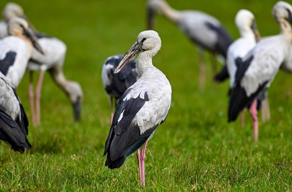 李晧嵐介紹,鉗嘴鸛以螺類為主食,能有效抑制福壽螺種群擴張,減輕其對生態和農業的危害,間接保護本土水生植物和螺類,維護濕地生物多樣性,為其他物種提供更穩定的棲息環境。(汪發銘/文、劉杰/圖、云南省文山州丘北縣融媒體中心供稿)