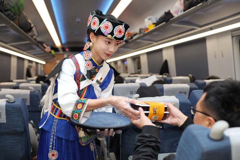 暑運期間,國鐵昆明局持續提升美好旅行體驗,通過增加安檢口、檢票口、電梯口人員配備等措施,提升車站通過能力;織密信息溝通網絡,持續深化對重點旅客提供站間協同、跨段聯處、跨局聯動、站車聯合服務;在列車上升級打造“一路茶香、和美通途”“云嶺天路?暢游無憂”等10項特色舉措,通過創新升級,提供防燙提示貼、暖心加熱桶和熱藏盒飯,新增蟲草花燉雞、棠梨花炒臘肉等37個特色菜品等,滿足旅客多樣化選擇;深化打造4趟民族團結進步示范列車,開展民族文化進車廂、文藝展演等活動,將云南民族特色優勢轉化為服務旅客的互動體驗,締造快樂之旅。