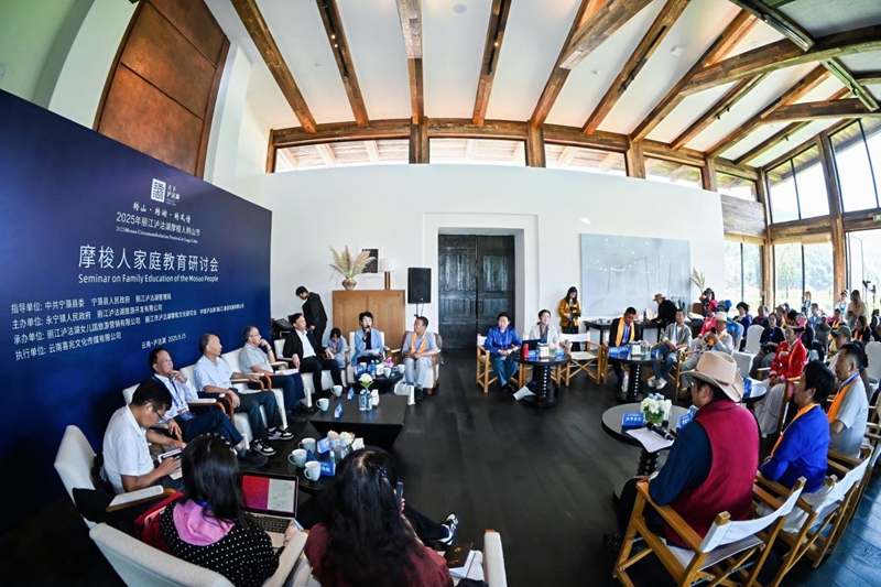 節慶期間,系列文化活動同步展開,全面展現了瀘沽湖畔的獨特風情。15日晚,摩梭人標志性的集體舞蹈——甲搓舞展演在落水碼頭舉行,場面熱烈。同日,一場聚焦“家風與摩梭文化”的研討會召開,來自中國作家協會、云南民族大學等機構的學者與摩梭文化傳承人,就摩梭母系文化的現代價值等議題展開了深入對話。