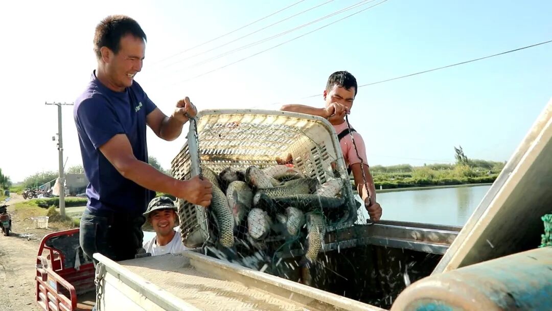 莎車縣喀群鄉特色水產養殖基地喜迎豐收。