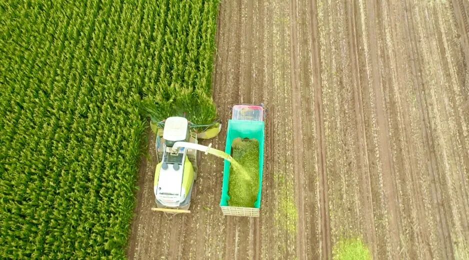 托里的草原邊,青貯玉米正迎來“綠色豐收”。翠綠的青貯玉米被收割機切碎、裝袋、壓實,堆成一座座綠色的“小山”。這些“翡翠綠”的青貯,是牛羊冬天的“營養餐”,抓一把聞一聞,滿是青草的清香,看著青貯堆,牧民們就盼著牛羊能在冬天長得更壯實。
