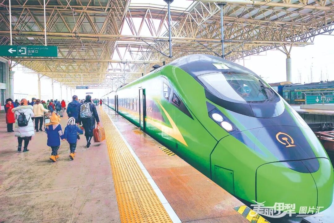 通車之初,精伊霍鐵路每日僅發1對列車,伊寧至烏魯木齊需11小時30分鐘,年發送旅客38萬人次。如今,經過一次次提速、擴容,精伊霍鐵路對發列車增至12對,5小時直達成為常態,年發送旅客躍升至315萬人次,累計發送超2800萬人次。這條“鋼鐵長龍”正以飛馳之勢,助力伊犁河谷各族兒女奔赴更加便捷美好的生活。