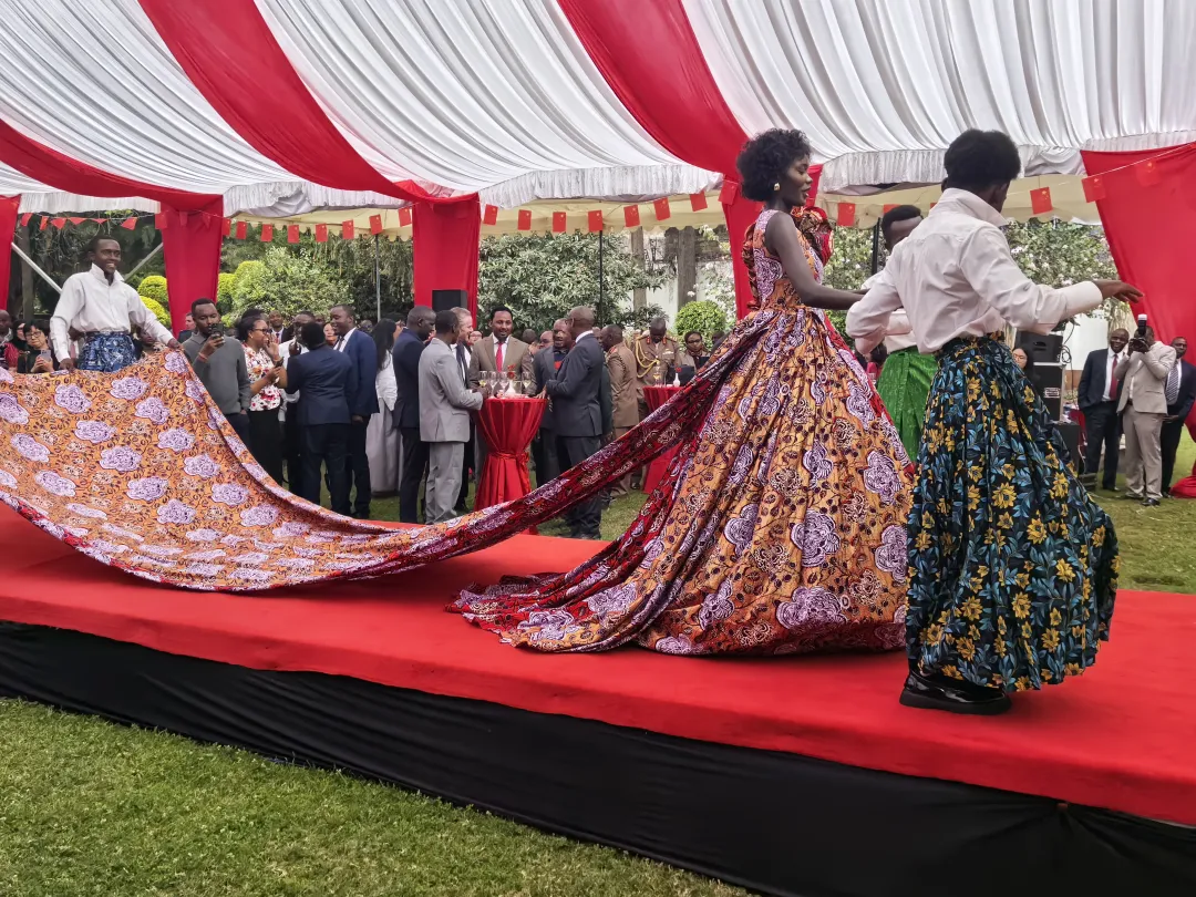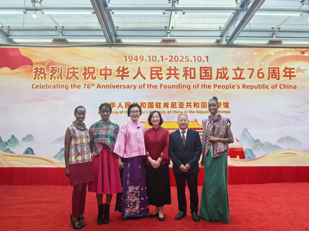 受中華人民共和國駐肯尼亞大使館邀請,山東省服裝設計協會與山東柳疃家用紡織品股份有限公司攜手,將魯錦非遺馬面裙帶至非洲,為中非400余名嘉賓呈現了一場主題為“非凡中國美—錦繡華裳”的時尚大秀,以此慶祝中華人民共和國成立76周年。