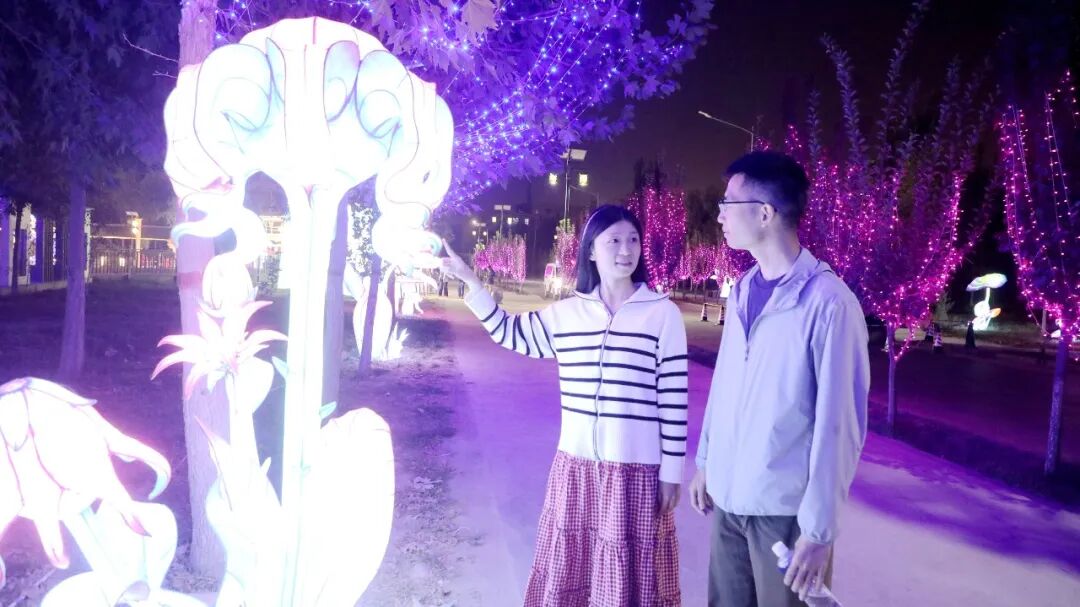 莎車縣第一中學學生努爾曼古麗?吐爾孫說:“平時忙學習很少外出,趁著國慶假期來逛公園,五顏六色的花燈特別好看,整個人都放松了很多?!?/p>