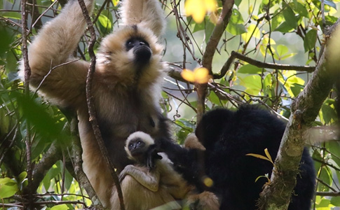 近年來,云南省普洱市景東縣為有效解決西黑冠長臂猿季節性食源減少問題,不斷加大無量山大寨子長臂猿食源植物的采種及育苗工作,當夏季來臨野果成熟,這里便成了西黑冠長臂猿的美食天堂。無量山哀牢山國家級自然保護區景東管護局將把大寨子食源植物配套項目成果逐步推廣和輻射到其它地方,為長臂猿保護、科研工作打下堅實基礎。