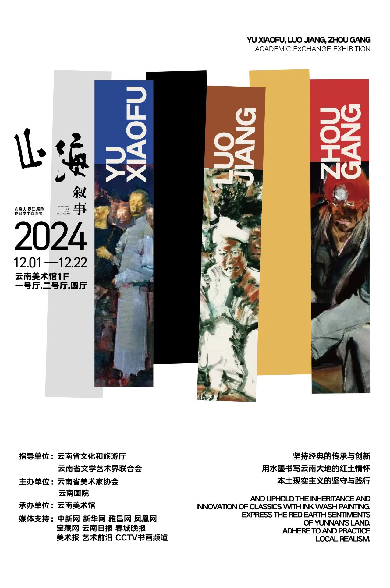 12月1日,由云南省文化和旅游廳、云南省文學藝術界聯合會指導,云南省美術家協會、云南畫院主辦,云南美術館承辦的“山海敘事”俞曉夫、羅江、周剛學術交流展將在云南美術館舉行。