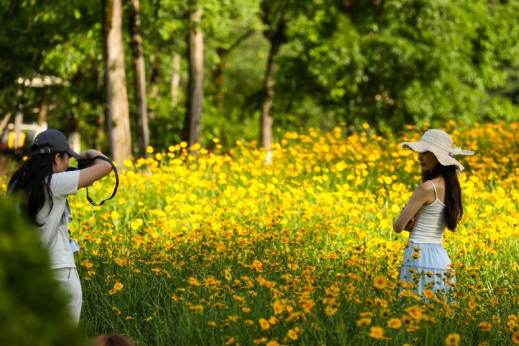 隨著初夏的到來,重慶各地的金雞菊絢爛綻放。成片的金雞菊隨風搖曳,與漫野綠意交織成一幅生動的夏日畫卷。