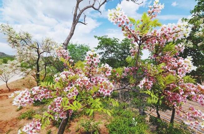 連日來,位于朝陽市建平縣華龍山南麓的文冠谷景區內的文冠果樹進入盛花期。繁花滿樹,潔白的花瓣在陽光下如斯綻放,吸引眾多游客賞花打卡。