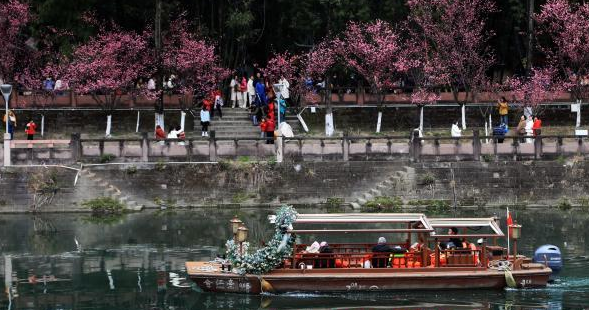 - 成都錦江河畔紅梅綻放 市民樂享“梅”景