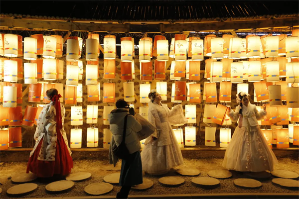 - 新年伊始,中國朝鮮族民俗園盛裝亮相,迎接前來旅拍和跨年的游客。在該景區,第三屆花燈節對外開放,園區設置了多個互動體驗區、拍照打卡區,在保留經典花燈元素的同時,因地制宜地植入朝鮮族民俗特色,巧妙運用聲、光、電技術,并融合VR技術、國潮和IP元素。